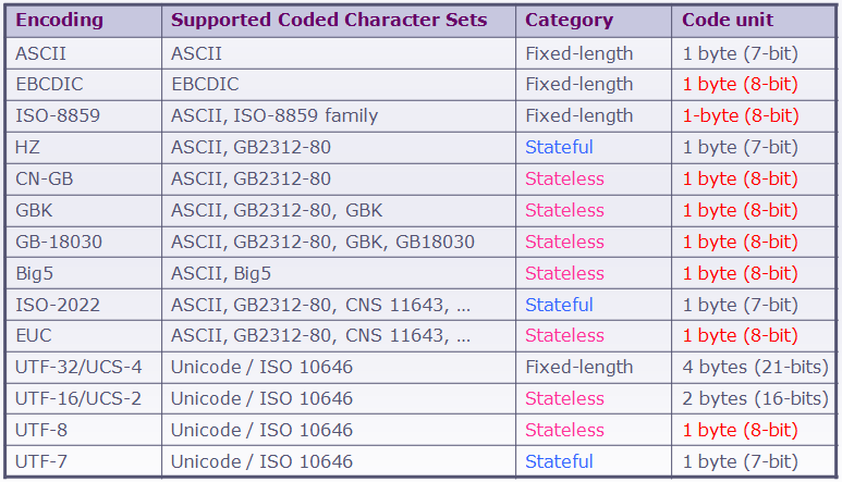 | 7 | U+0000 | U+007F | 1 | 0xxxxxxx |